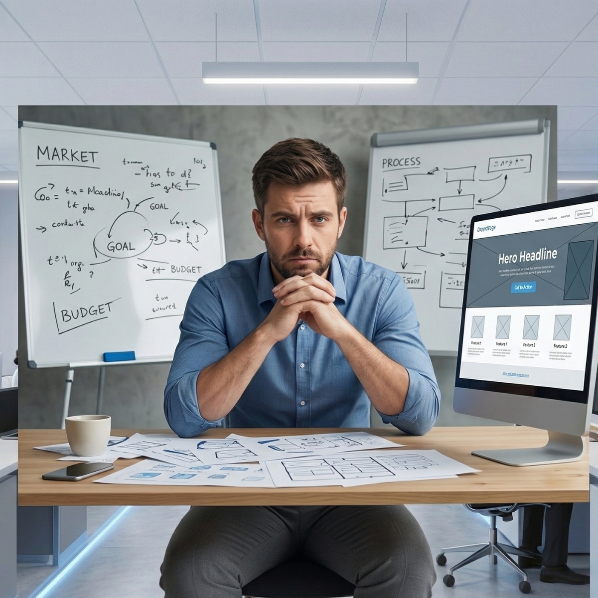 Deine aktuelle Seite fühlt sich eher wie eine Baustelle oder eine alte Visitenkarte an. Du weißt, dass du sie neu erstellen musst, um den Prozess deiner Kundengewinnung endlich planbar zu machen.